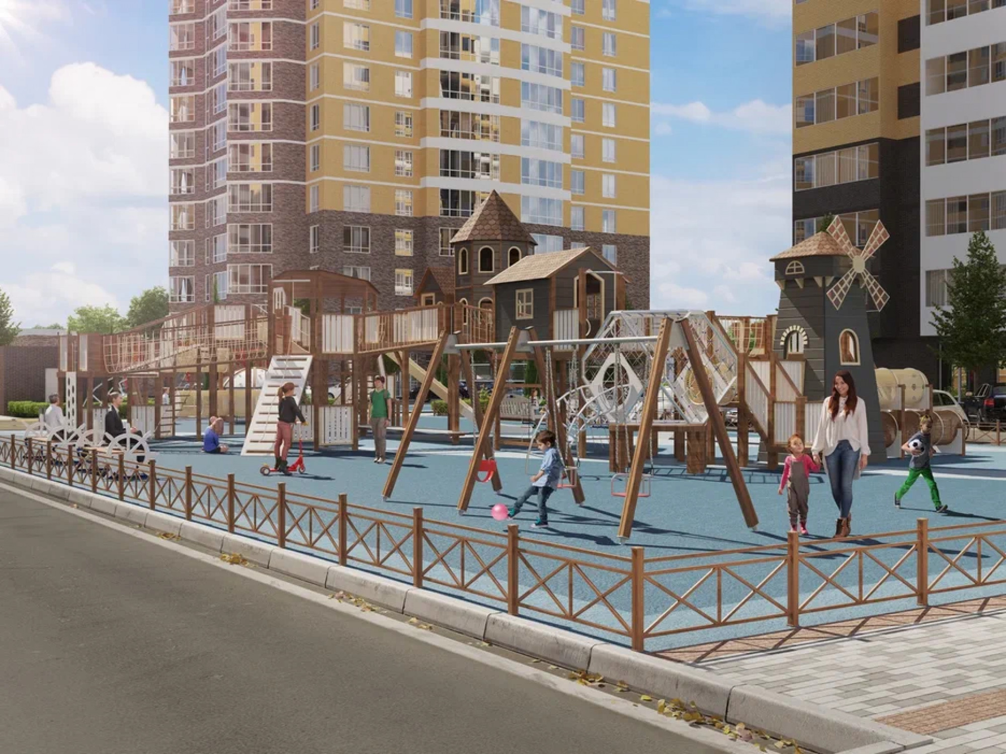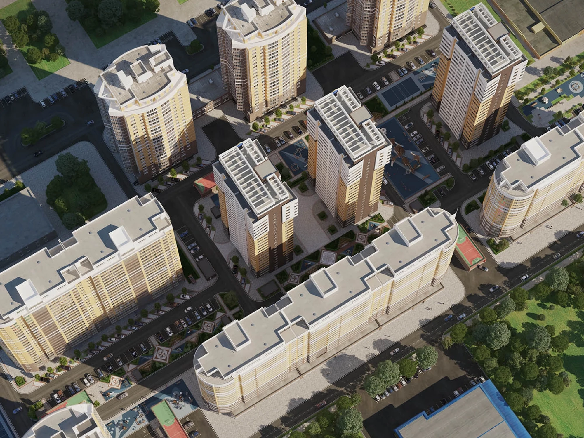 транспортная развязка, магазины, места отдыха и развлечений, парковые зоны.